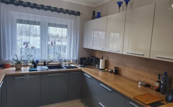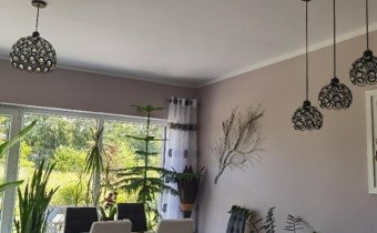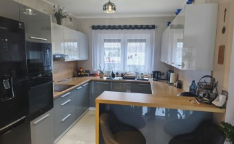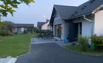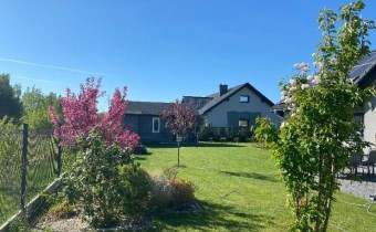Dom zachwyca przestronnością, luksusowym wykończeniem, zadbanym i starannie pielęgnowanym ogrodem. Parter domu to przestronny salon z jadalnią i kuchnią, 3 niezależne sypialnie (jedna sypialnia z garderobą), łazienka z ubikacją, spiżarnia, holl, oraz garaż i kotłownia (z umywalką i sedesem).