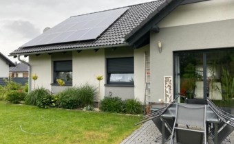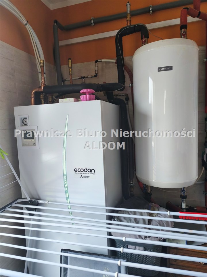 Ogrzewanie podłogowe we wszystkich pomieszczeniach, poza spiżarnią i garażem (kotłownia również ogrzewana): pompa ciepła firmy Mitsubishi. Fotowoltalika. Rozliczanie energii na „starych zasadach” bardzo korzystnych dla odbiorców – rachunki za energię za rok wynoszą około 2.000,00 zł (rachunki do wglądu).