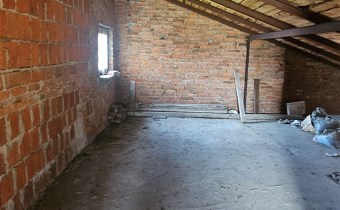 Powierzchnia użytkowa domu wynosi 150 m2 a całkowita 218 m2. Dom jest całkowicie podpiwniczony (W piwnicy są dwa pomieszczenia + kotłownia). Na parterze : trzy pomieszczenia ( przewidziane pod 2 pokoje i łazienkę). Parter był planowany pod działalność usługową w tym domu.