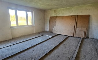 Poddasze- jest podzielone na 2 części ( jedna niżej , druga wyżej) Jest na tyle wysokie , że istnieje możliwość adaptacji na cele mieszkalne. W domu jest rozprowadzona elektryka. Kanalizacja jest w drodze. Woda - na działce.