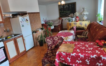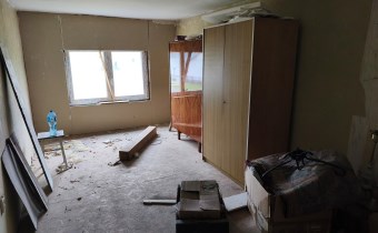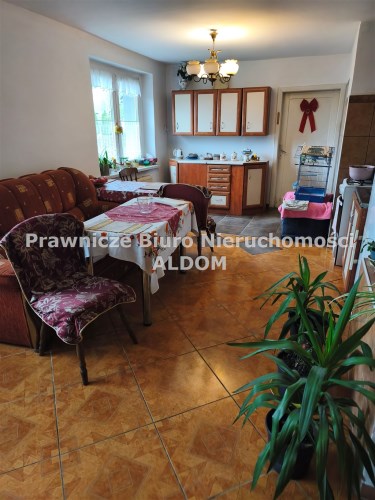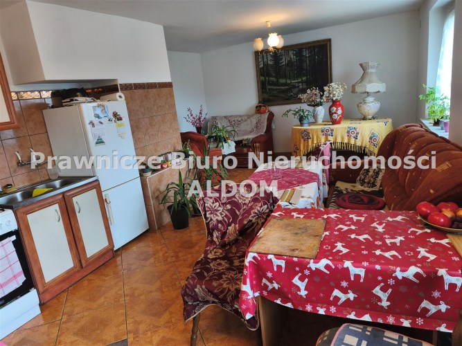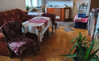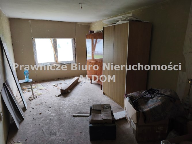 Na parterze znajduje się pokój dzienny połączony z kuchnią, 2 sypialnie, łazienka z WC, korytarz, 2 niewielkie pomieszczenia gospodarcze (mogące służyć jako garderoba i schowek), kotłownia oraz wiatrołap. Na piętrze znajdują się 2 pokoje (do wykończenia). Okna plastikowe, w łazience stare drewniane (okno do łazienki zostało już zakupione, wymaga zamontowania).