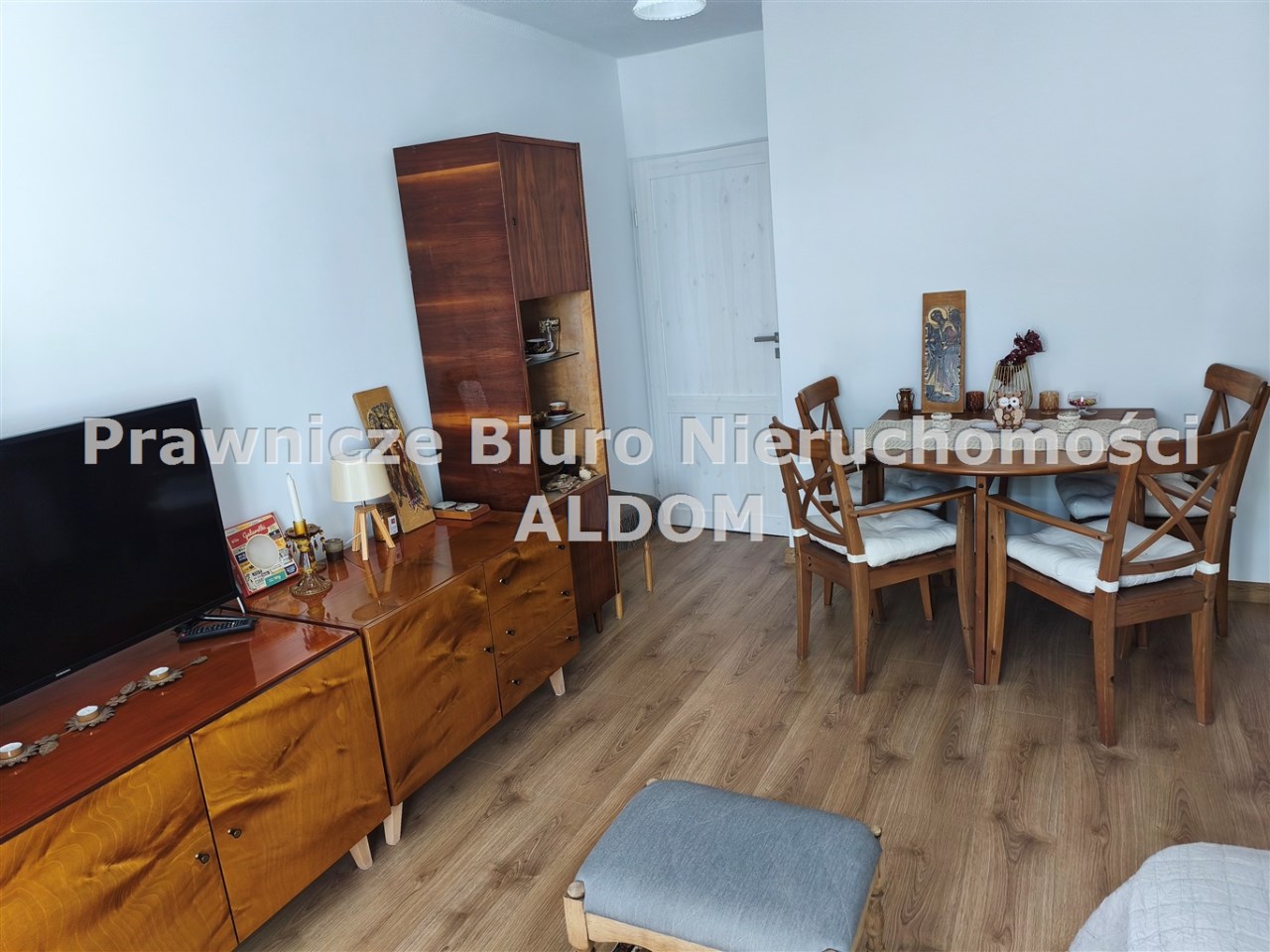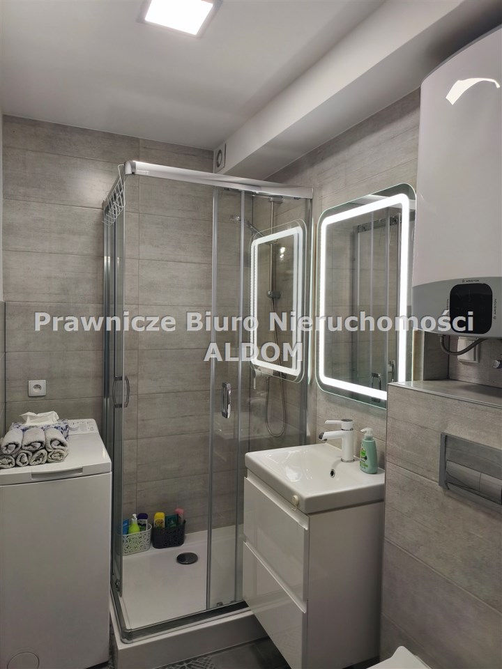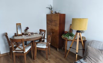 Większość mebli widocznych na zdjęciach pozostają na wyposażeniu i są w cenie mieszkania (zabrany zostanie z dużego pokoju stół z krzesłami i 2 szt siedzisk, z małego pokoju: łóżko, toaletka i stolik nocny). Pralka, lodówka również zostają w mieszkaniu.