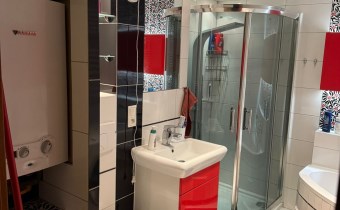 Mieszkanie posiada bardzo wysoki standard, okna plastikowe wraz z zewnętrznymi roletami antywłamaniowymi, na podłogach w pokojach nowoczesne parkiety, podwieszane sufity, ściany malowane . W łazience znajduje się kabina prysznicowa, wanna oraz piecyk gazowy podgrzewający wodę zarówno w łazience jak i w kuchni.