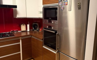 Na wyposażeniu mieszkania znajdują się meble w zabudowie kuchennej, wraz z wbudowanym piekarnikiem, płytą gazową (gaz z sieci miejskiej) oraz lodówka. Wyposażenie pokoi widoczne na zdjęciach. Na przedpokoju pakowna zabudowana szafa.